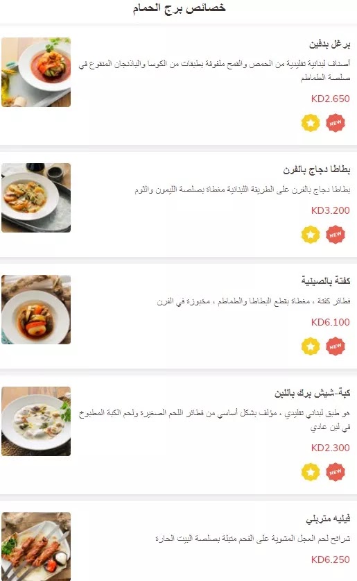 مطعم برج الحمام الكويت المنيو الجديد ورقم الهاتف والعنوان