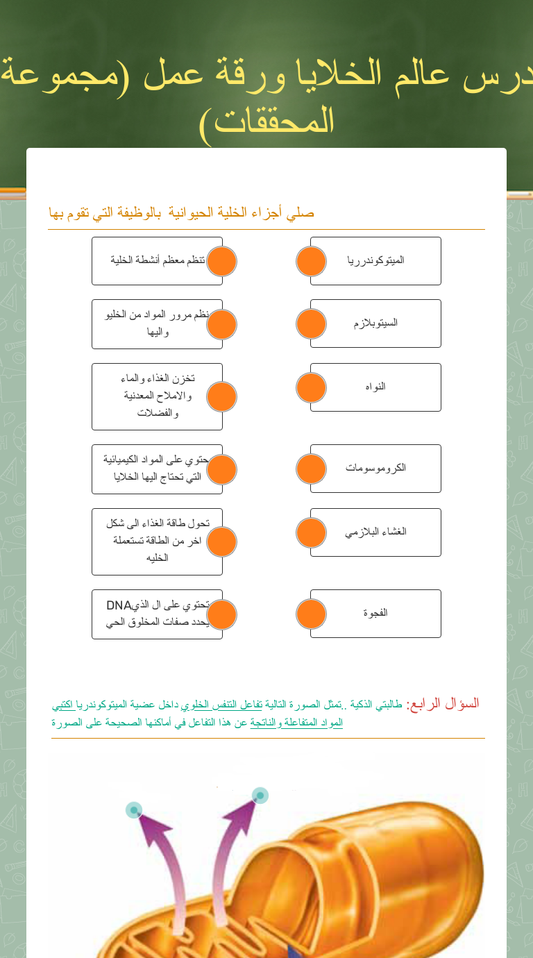 أنشطة الخلايا النباتية والحيوانية عضيات الخلية
