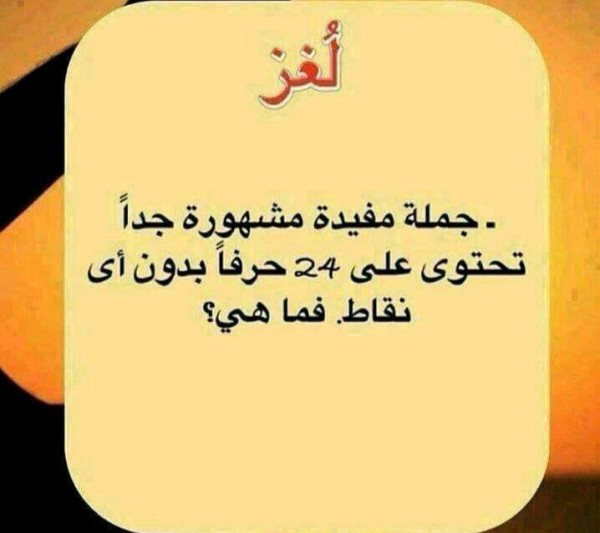 حل لغز جملة مفيدة مشهورة جدا تحتوي على 24 حرف بدون أي نقاط فما هي ما الحل