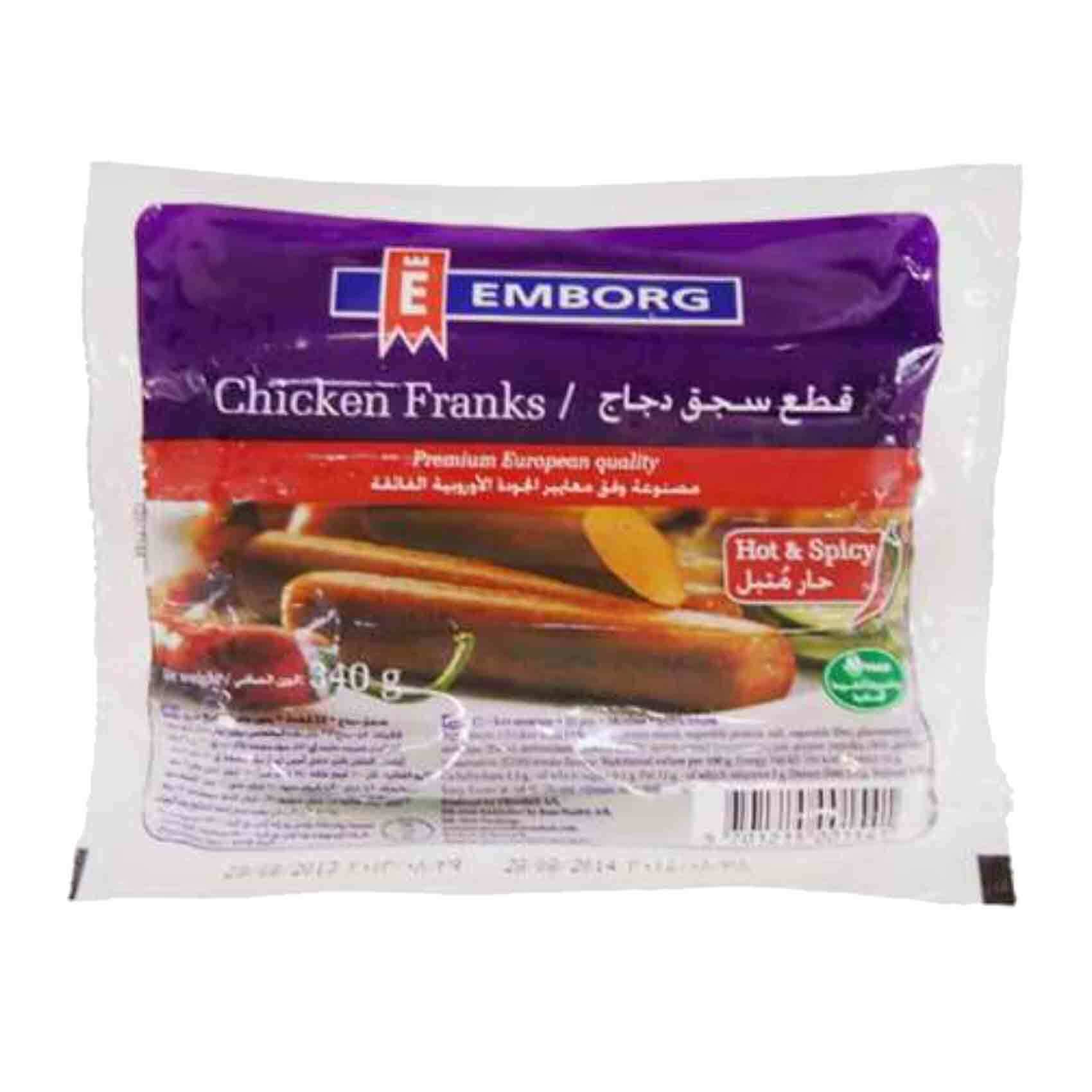buy emborg chicken franks hot 340 gram online shop frozen food on carrefour jordan